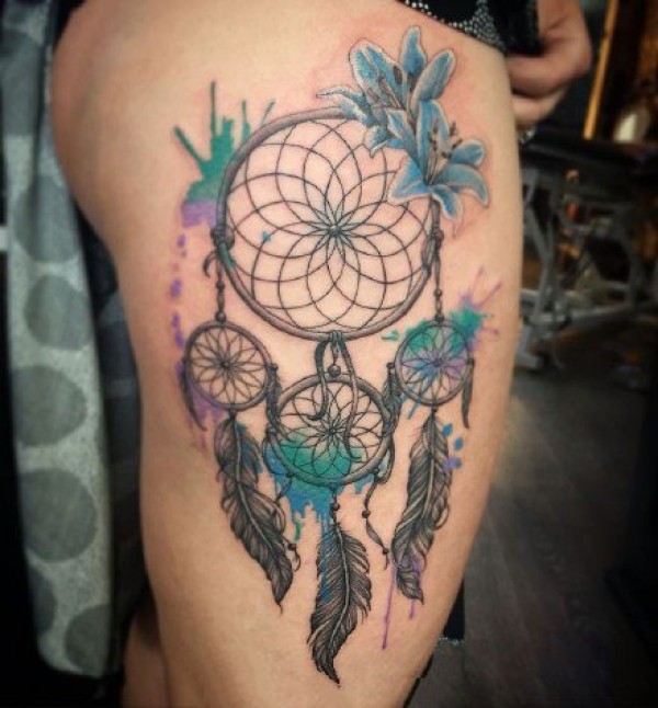 适合女孩子的小清新捕梦网彩色纹身图案