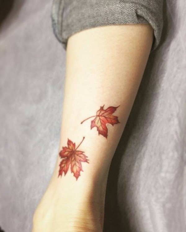 枫叶纹身图片:漂亮的一组枫叶纹身作品图片欣赏