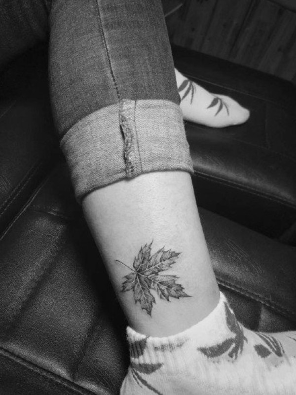 女子小腿上的枫叶图案
