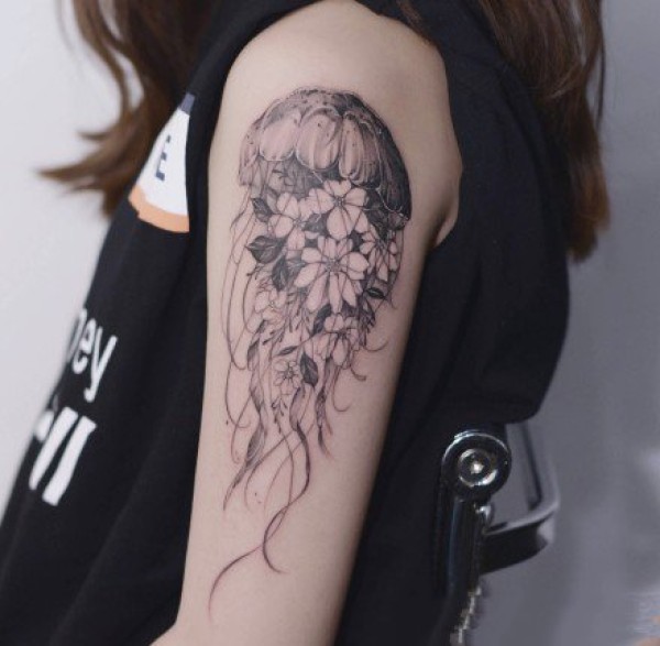 水母纹身图案-柔美文艺的可爱动物水母纹身图案