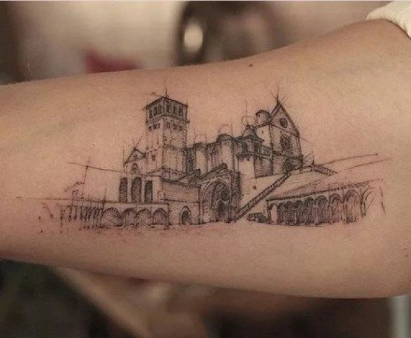 教堂纹身图案 极具欧美建筑色彩的教堂纹身图案