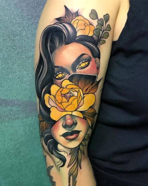 一组new school风格的欧美美女人像纹身