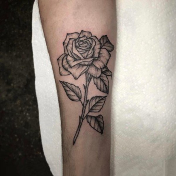 欧美玫瑰纹身 男生手臂上花朵纹身图片