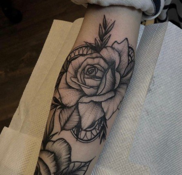 欧美玫瑰纹身 男生手臂上花朵纹身图片