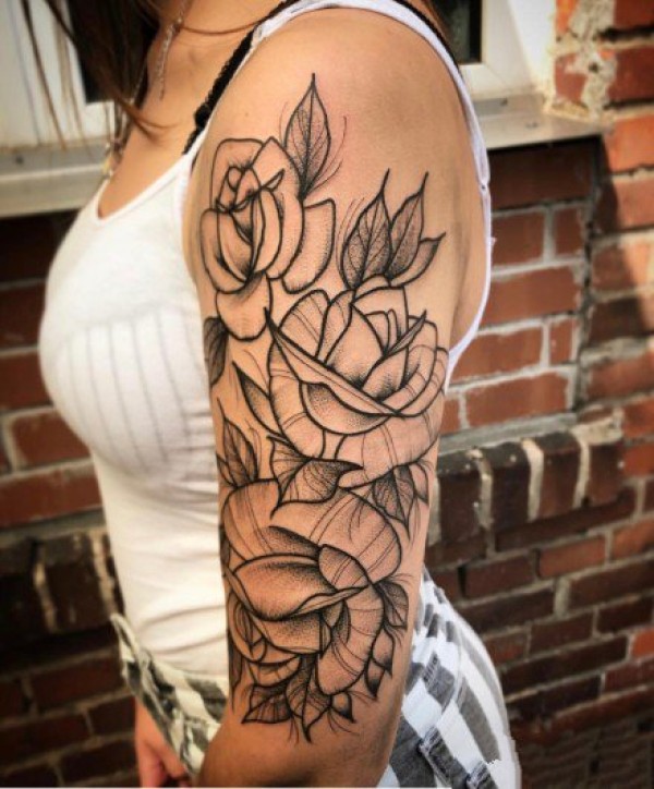 手臂上的黑灰花朵纹身图案18张