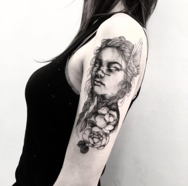 心脏纹身图案 女生手臂上黑灰纹身心脏纹身图案