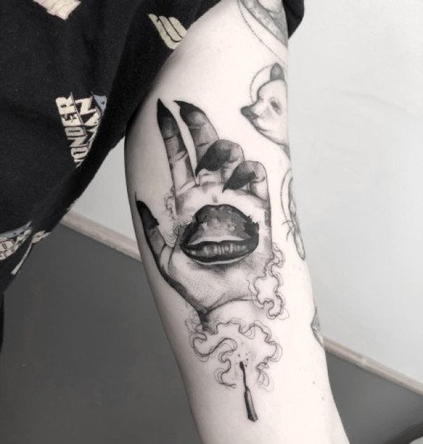 心脏纹身图案 女生手臂上黑灰纹身心脏纹身图案