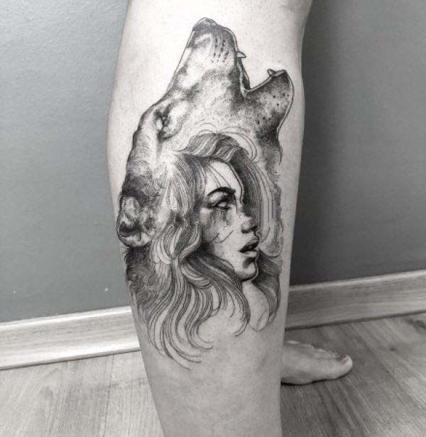 花腿纹身--一组大黑腿纹身图案作品欣赏