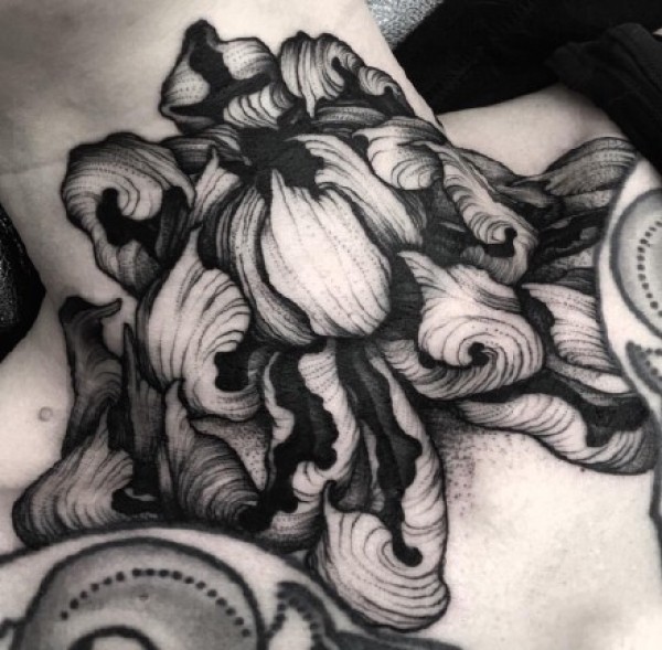 肩花纹身--一组适合肩部的黑灰肩花纹身图案欣赏