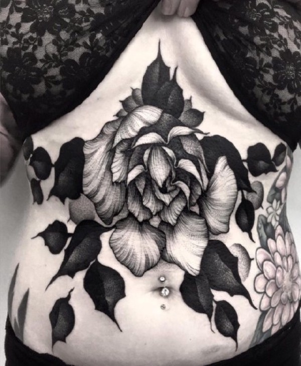 肩花纹身--一组适合肩部的黑灰肩花纹身图案欣赏