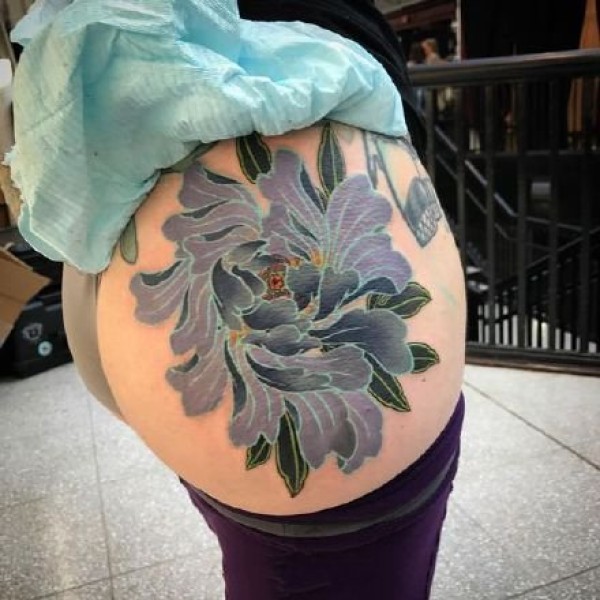 性感的一组女性臀部屁股上艳丽花朵纹身图案