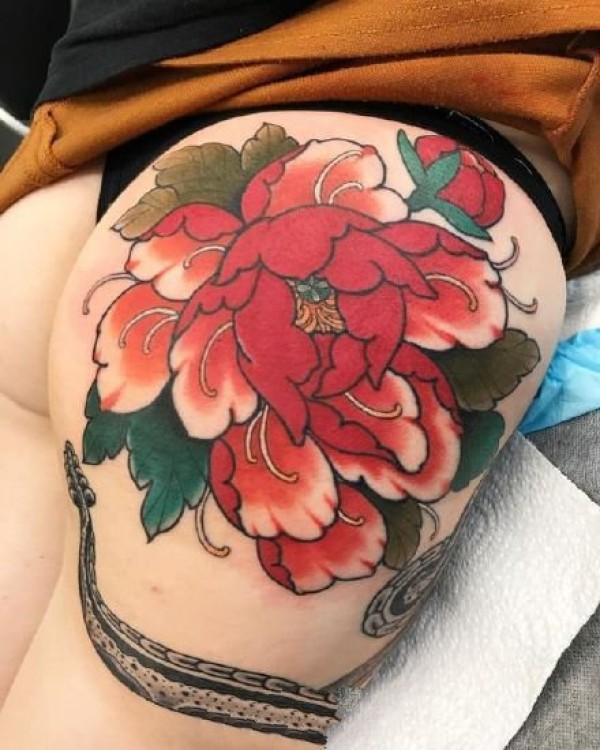 性感的一组女性臀部屁股上艳丽花朵纹身图案