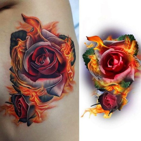艳丽的一组3d玫瑰花朵创意纹身图案