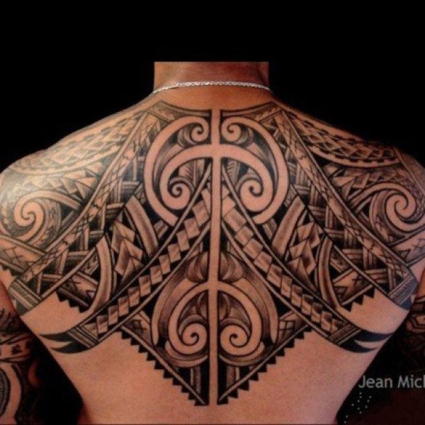 男性背部帅气的部落图腾纹身图案