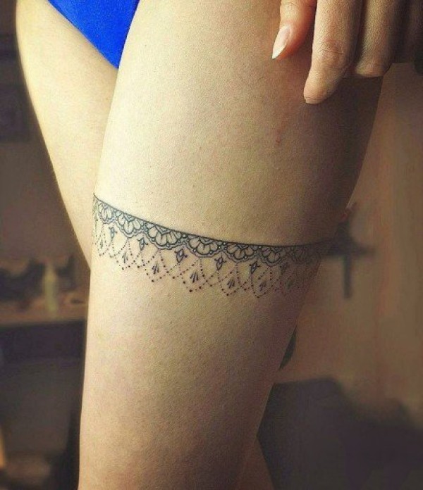 性感撩人的大腿上的蕾丝纹身
