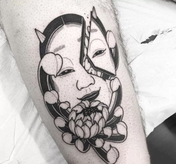 能面万媚纹身手稿_52张日式能剧面具纹身手稿图案素材欣赏