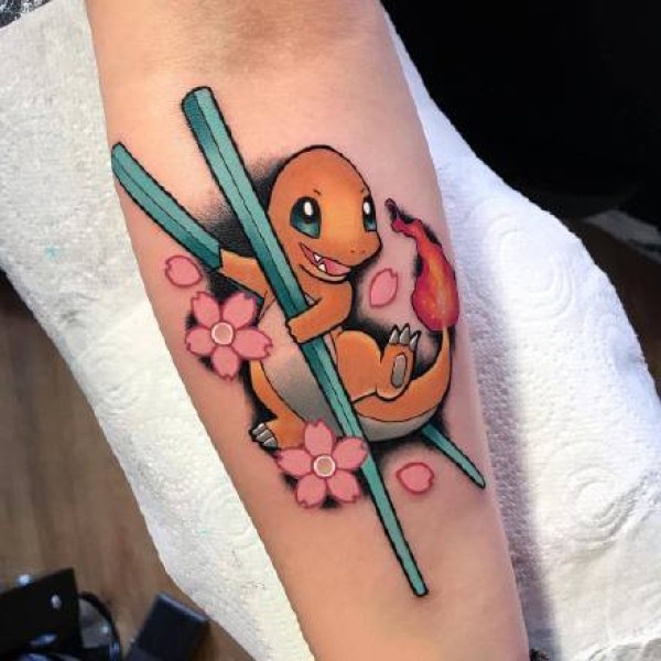 手臂纹身图片 男生手臂上彩色的神奇宝贝纹身图片