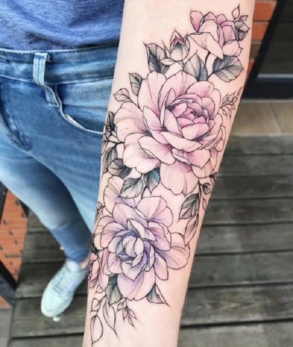 和实物非常相似的手臂花朵纹身图案