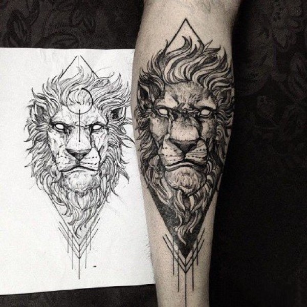 一组好看的狮子纹身设计图案作品9张