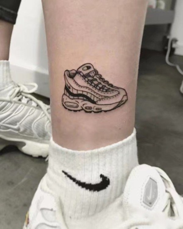球鞋纹身 男生小腿上几何和鞋子纹身图片