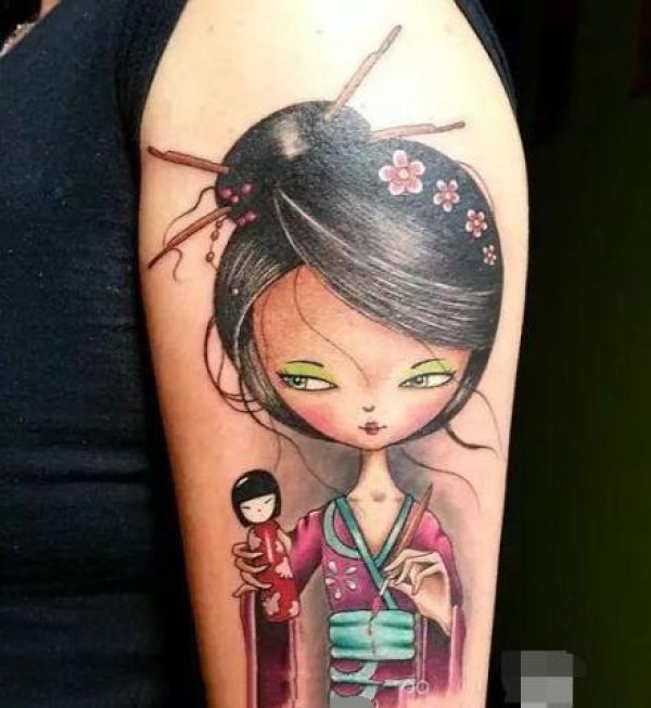 手臂艺伎:9张纹在胳膊上的花旦艺伎纹身图案