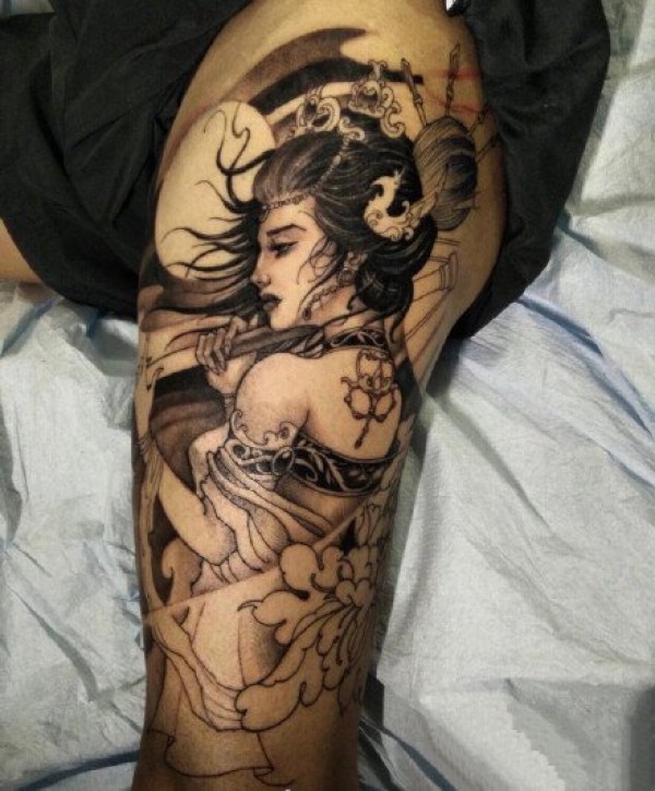艺伎纹身--一组独特创意的日式艺妓纹身图案作品