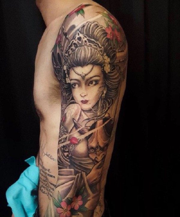 手臂艺伎:9张纹在胳膊上的花旦艺伎纹身图案