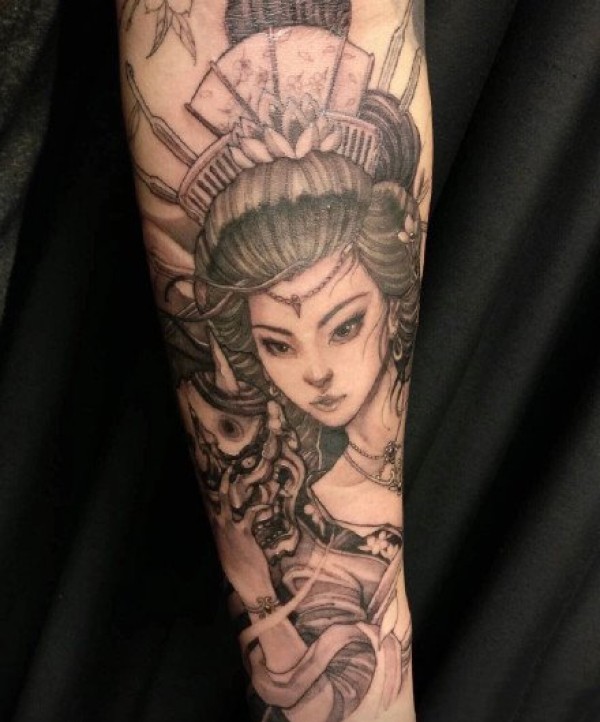 手臂艺伎:9张纹在胳膊上的花旦艺伎纹身图案