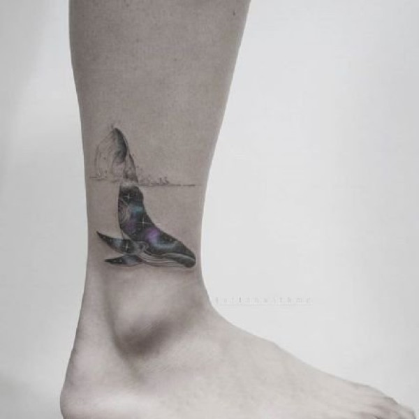 9张唯美的星空和鲸鱼搭配的纹身图案