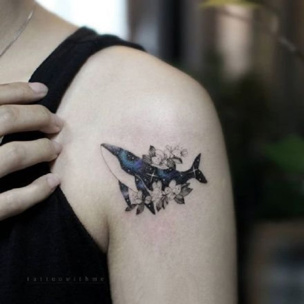 9张唯美的星空和鲸鱼搭配的纹身图案