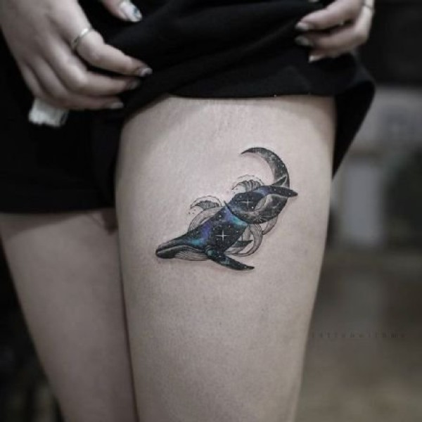 9张唯美的星空和鲸鱼搭配的纹身图案