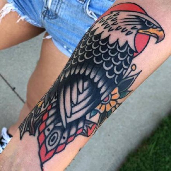 飞鹰纹身--9张线条感极强的猛禽展翅飞鹰纹身图案