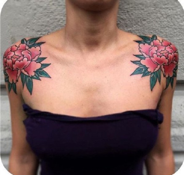 美丽的女士成对肩花纹身图案欣赏