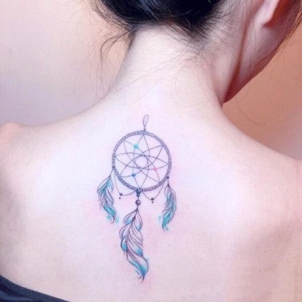 女孩子喜欢的小清新捕梦网纹身作品