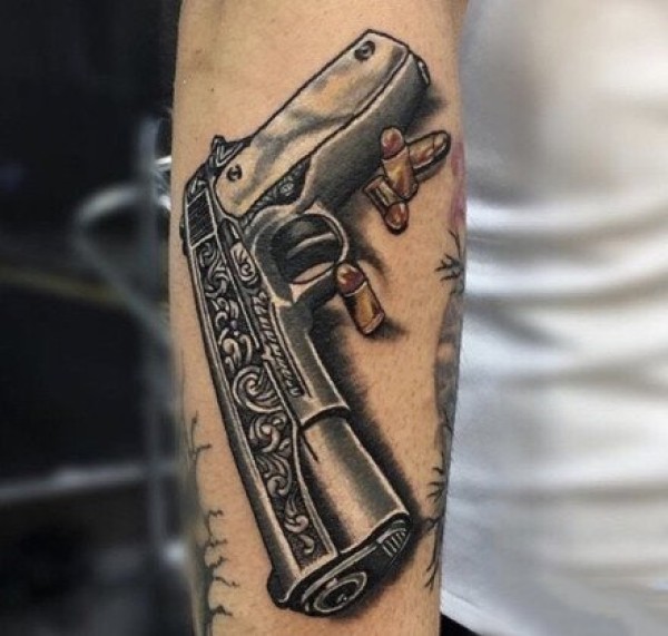 小手枪纹身 小黑色的9张手枪纹身图案欣赏