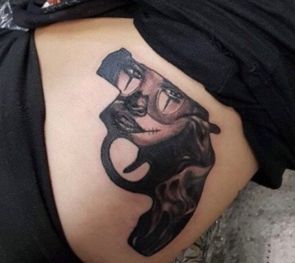 小手枪纹身 小黑色的9张手枪纹身图案欣赏
