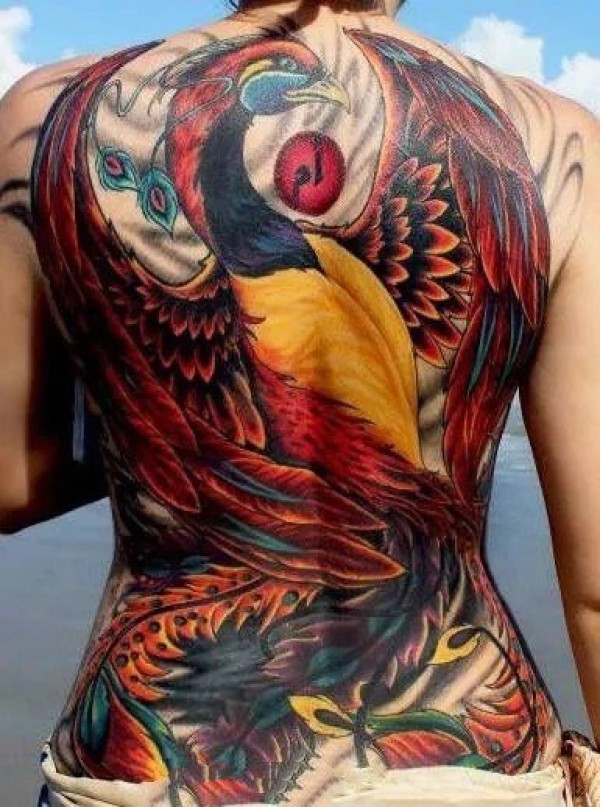 满背凤凰和鲤鱼纹身图案