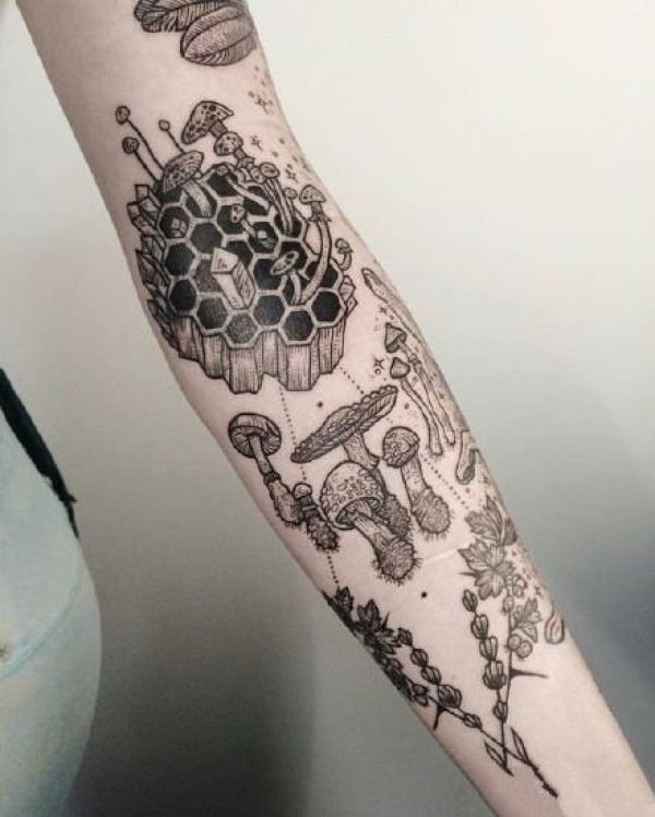 蘑菇纹身图案_9张黑灰蘑菇纹身图案刺青图片作品