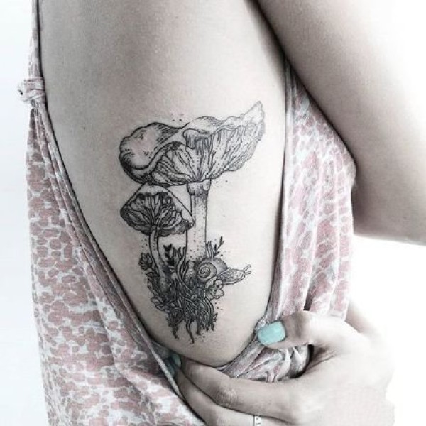蘑菇纹身图案_9张黑灰蘑菇纹身图案刺青图片作品