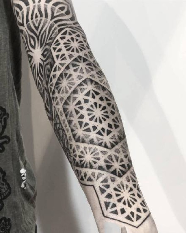 25款男性黑色手臂线条纹身点刺技巧半甲纹身图案