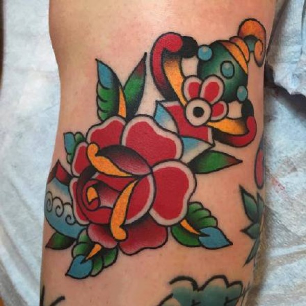 女生腿部唯美潮流的school玫瑰花纹身图案_玫瑰花纹身图案大全_纹身图吧