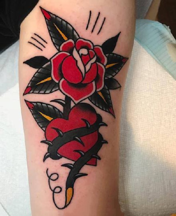 娇艳玫瑰手臂纹身_玫瑰花纹身图案大全_纹身图吧
