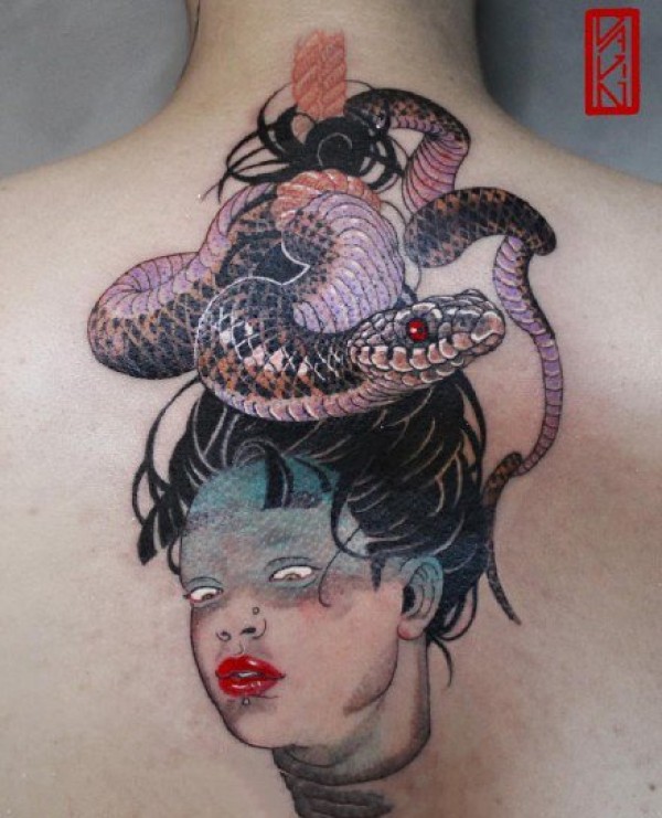 日本传统女性的一组彩色创意纹身作品