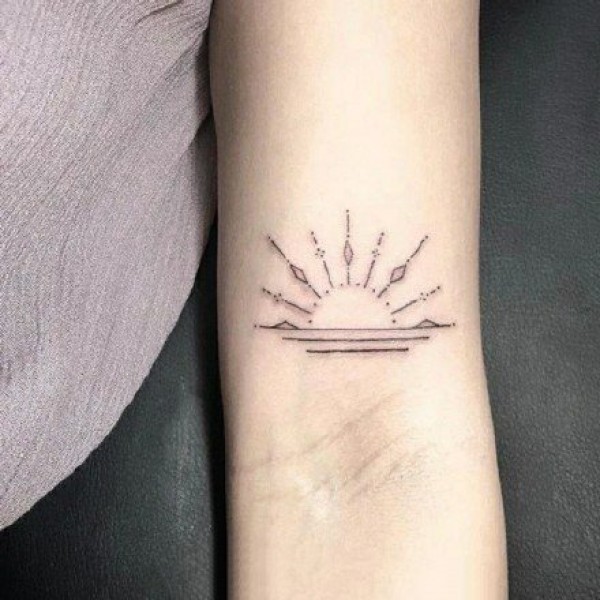胳膊肘上的太阳纹身