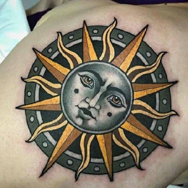 日月纹身--很适合情侣的太阳月亮的成对日月纹身图案