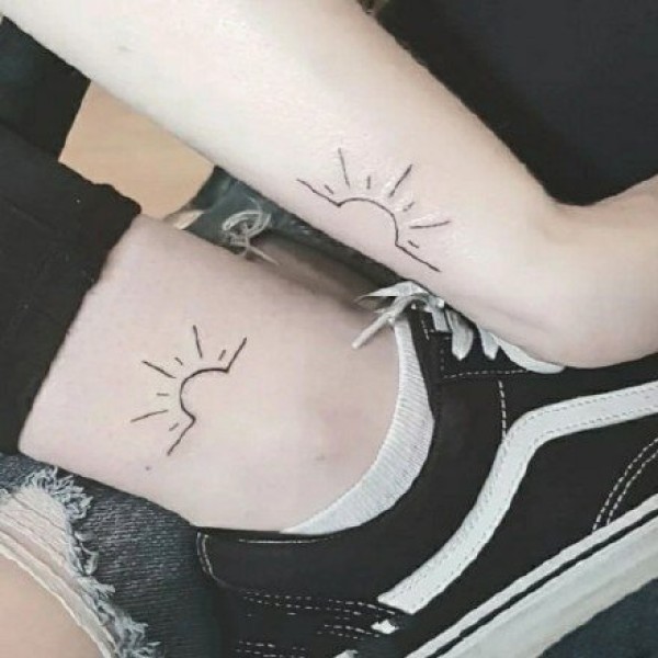 日月纹身--很适合情侣的太阳月亮的成对日月纹身图案