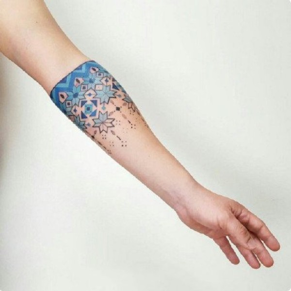 小臂手腕处很有民族风情的手环臂环纹身图案
