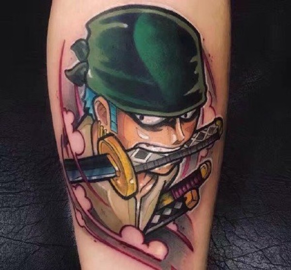 腿部点刺日本漫画海贼王全体成全纹身图案