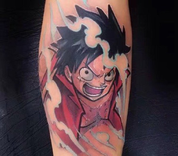 腿部点刺日本漫画海贼王全体成全纹身图案
