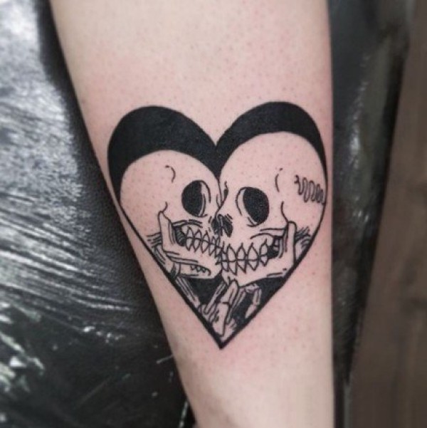 黑色桃心心形中的创意纹身图片